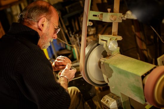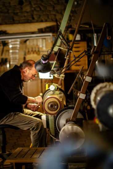 Comme tous les enfants élevés en partie à la campagne, j’ai toujours eu un couteau dans ma poche. Grace à un ami, j’ai franchi le pas de simple amateur à fabricant de couteaux il y a une vingtaine d’années. Je me suis formé à la forge auprès de Jean Jacques Astier, puis depuis 2000 à la « mécanique » des couteaux pliants avec François Bignon qui est devenu un ami proche et chez qui je monte faire un stage tous les ans pour continuer à affiner ma technique sur les crans forcés, les pompes et les liners locks.